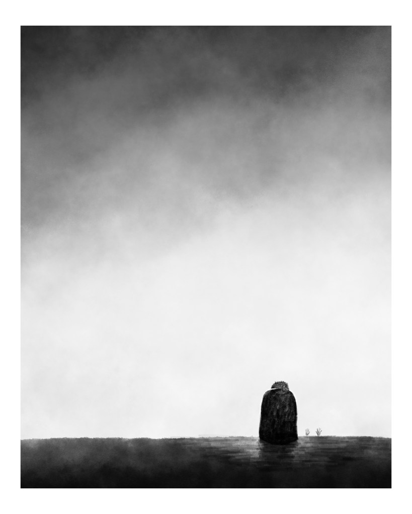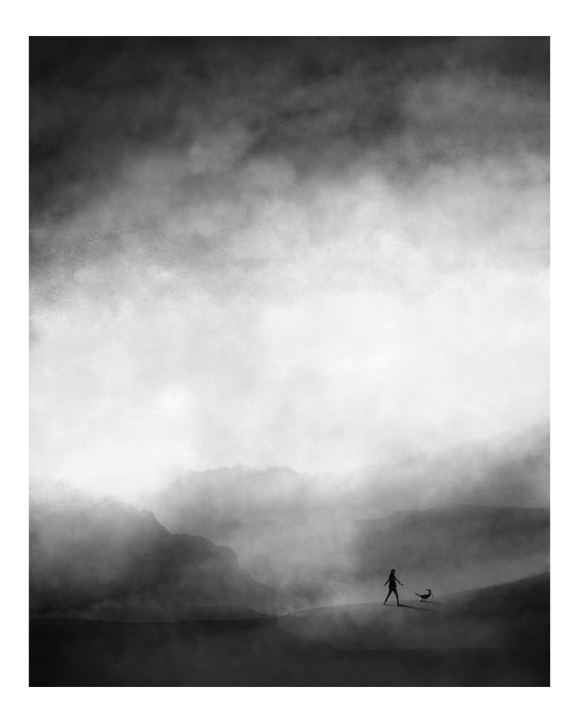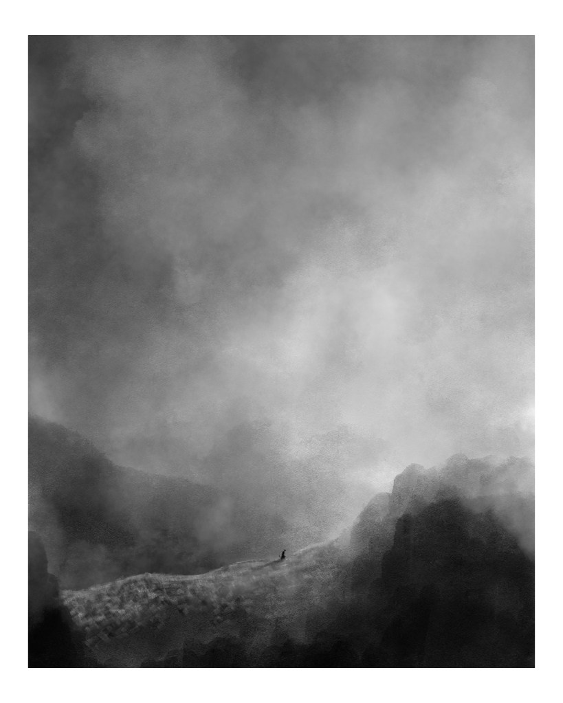 I practice as a mixed-media artist and illustrator. Since moving to Wales in 2019, the beautiful surrounding landscape has increasingly found its way into my mysterious misty drawings. My work deals with isolation, the human condition, and the brevity of life, combining monochromatic compositions with snatches of self-penned prose and poems. Narrative plays an integral role in my work, hoping to elicit snatches of larger tales in the imagination of the audience.